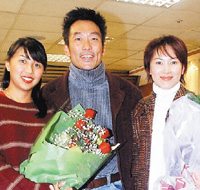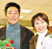 鄭浩南和陳秀雯昨晚於寒風中抵台。